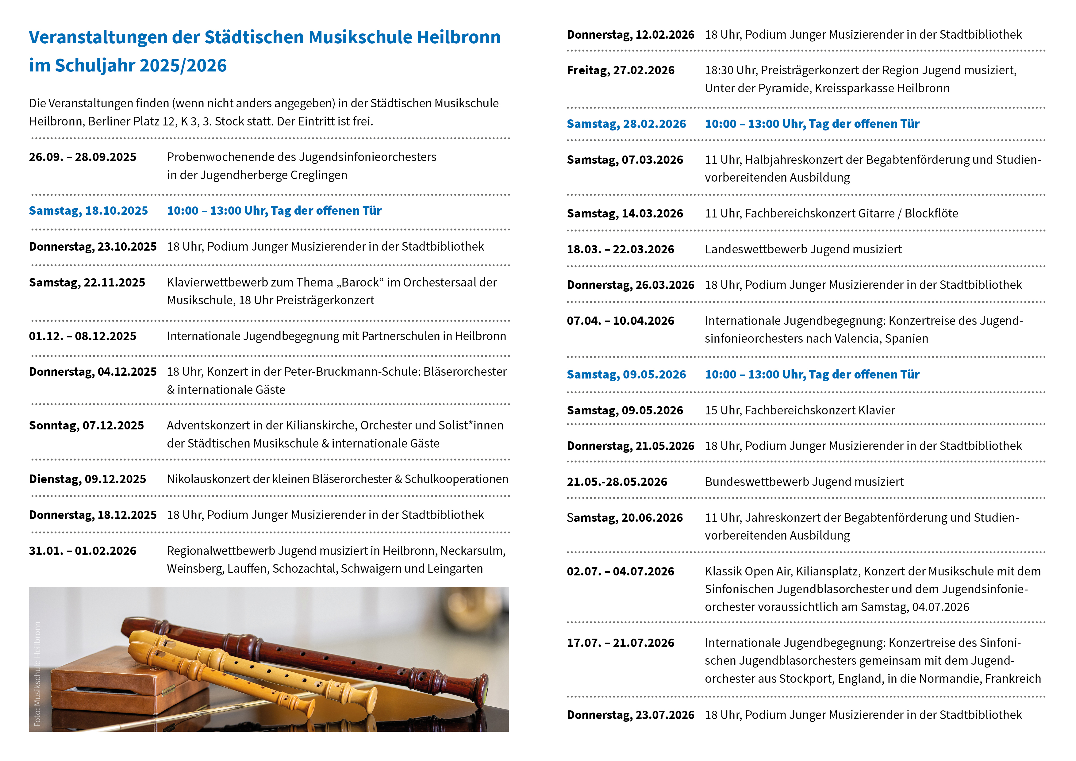 Flyer - Die Veranstaltungen der Städtischen Musikschule Heilbronn im Schuljahr 2025/2026