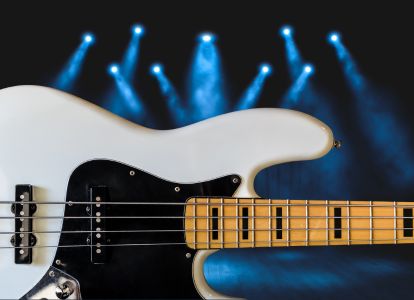 Der E-Bass wird wie die E-Gitarre elektrisch verstärkt. Unter den Saiten sind die elektromagnetischen Tonabnehmer, welche die Schwingungen der Saiten, die durch das Zupfen entstehen, abnehmen und in ein elektrisches Signal umwandeln. Der E-Bass wird im Stehen gespielt und mit einem Gurt um die Schulter getragen. Der E-Bass bildet den akustischen Grundstein in allen Jazz-, Rock-, Pop-Ensembles.